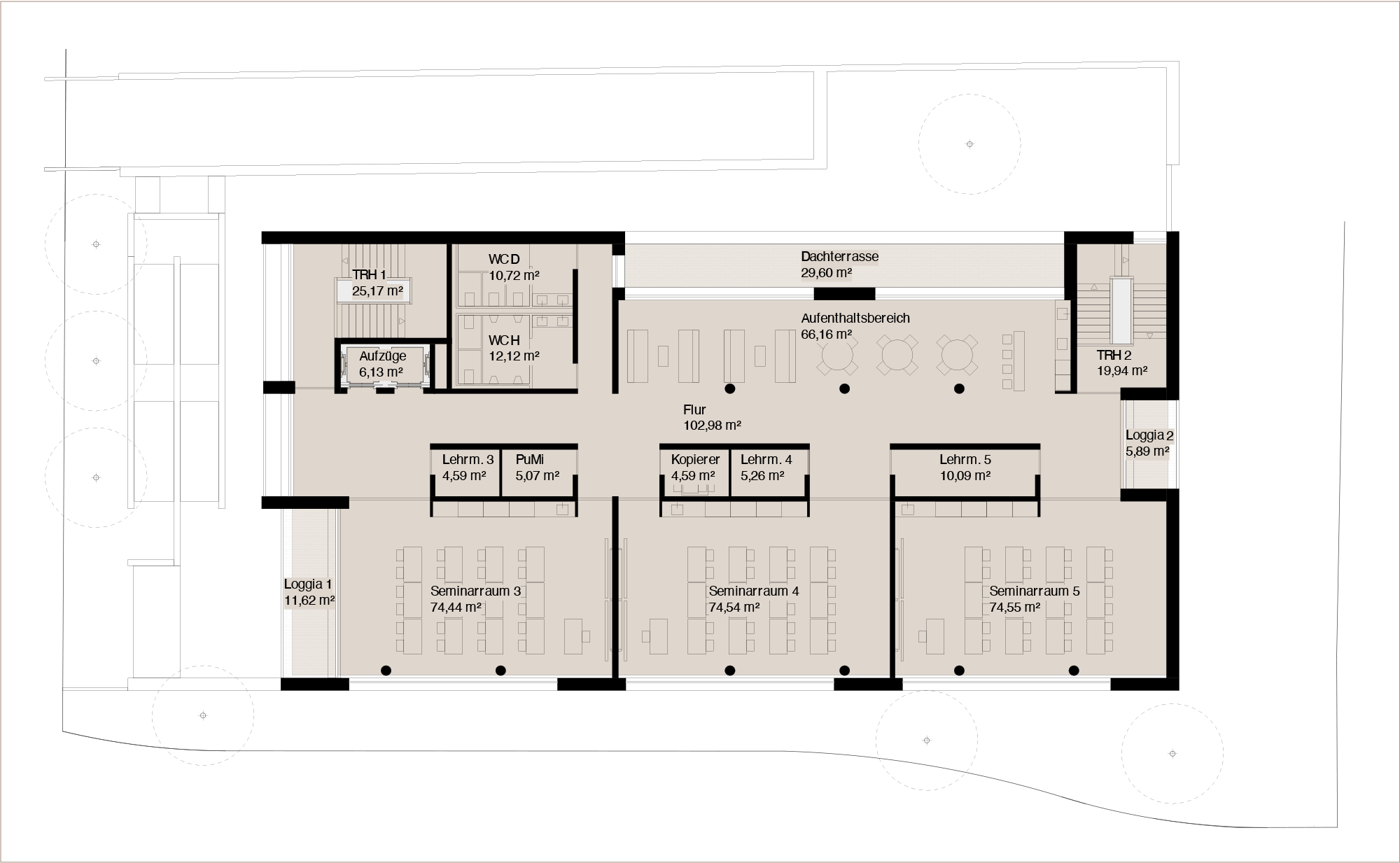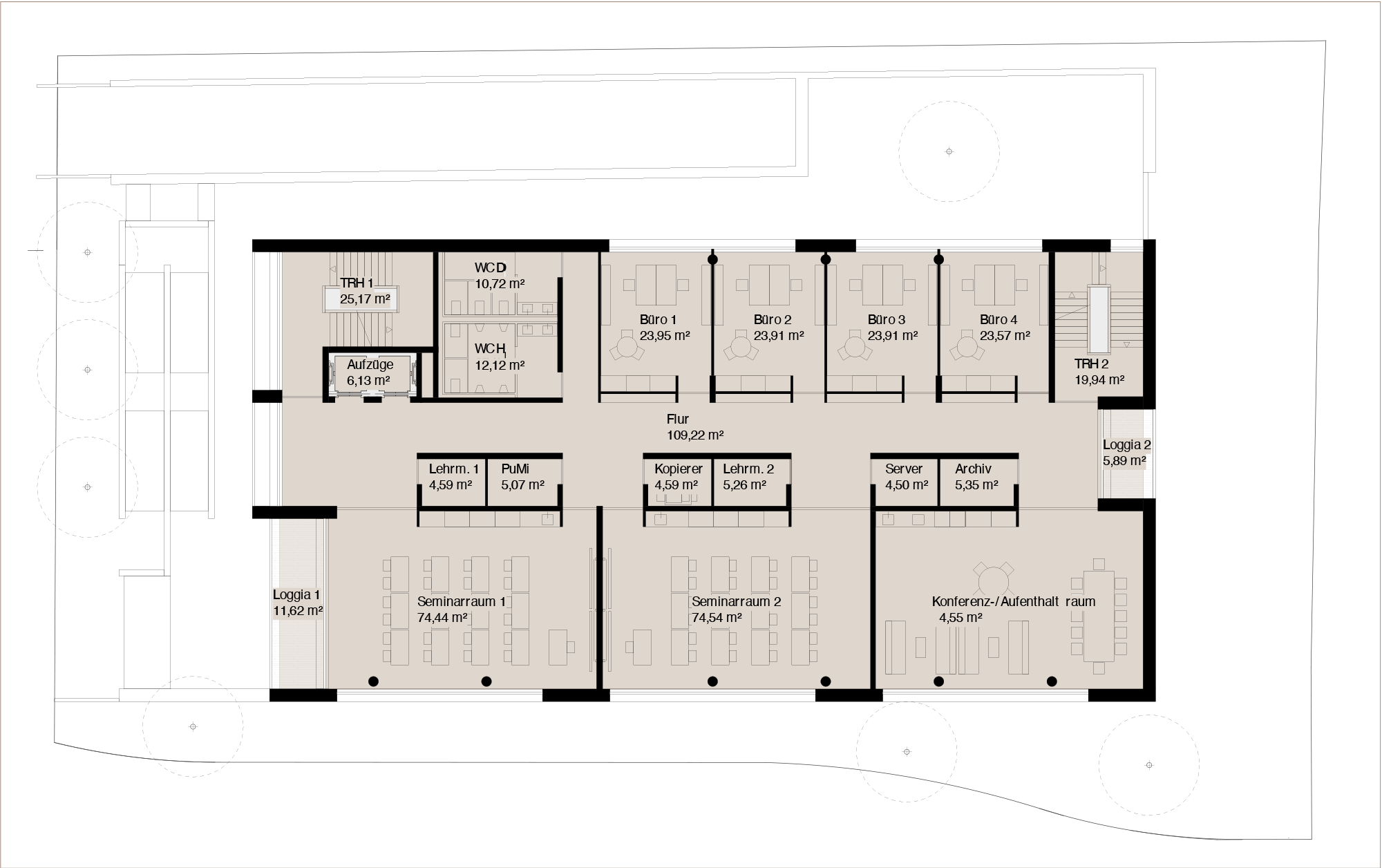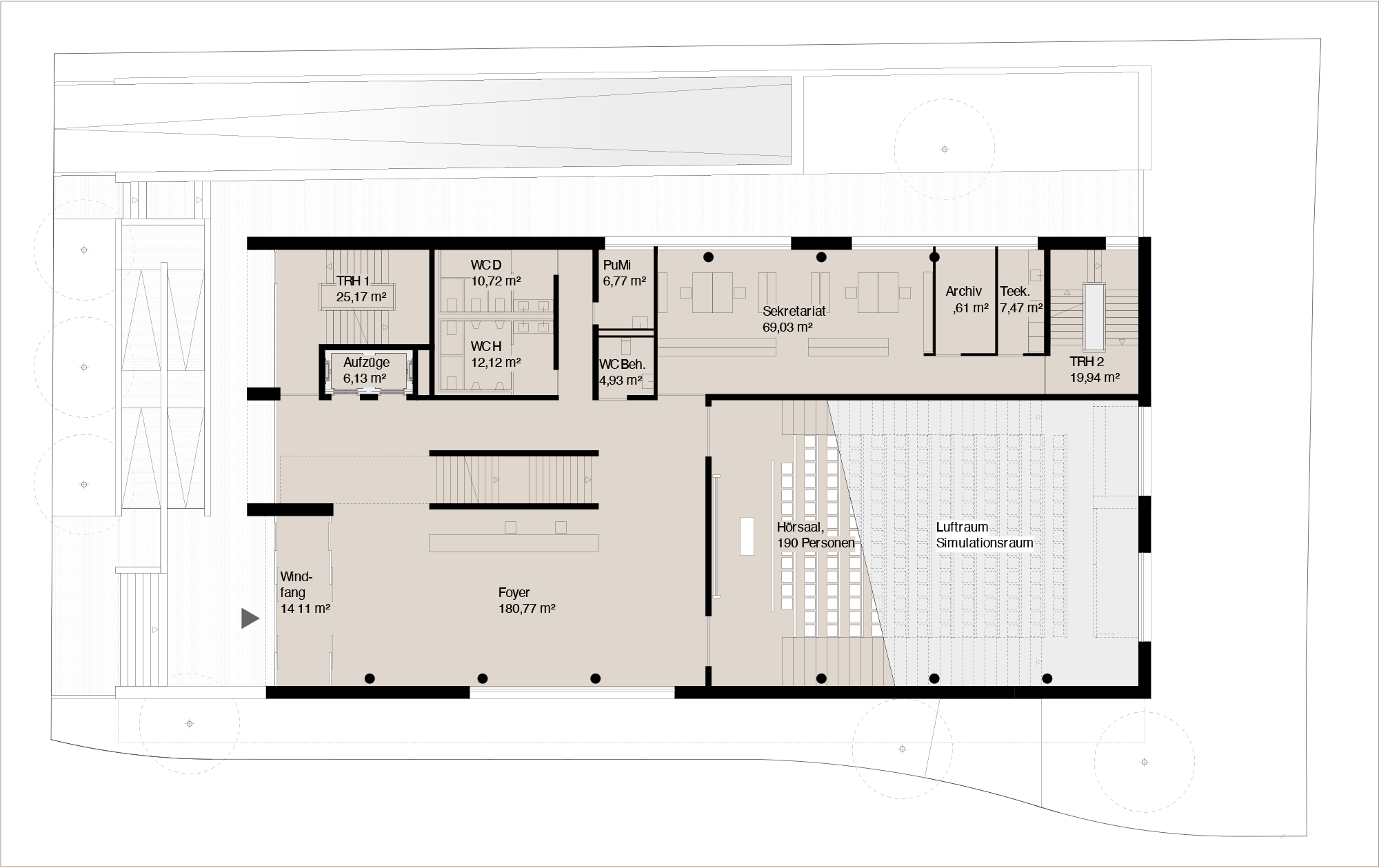 beherbergt die Studie einen geräumigen Lehr- und Hörsaal. Über vier Geschossebenen