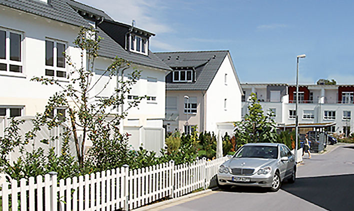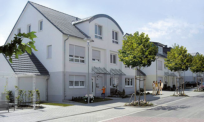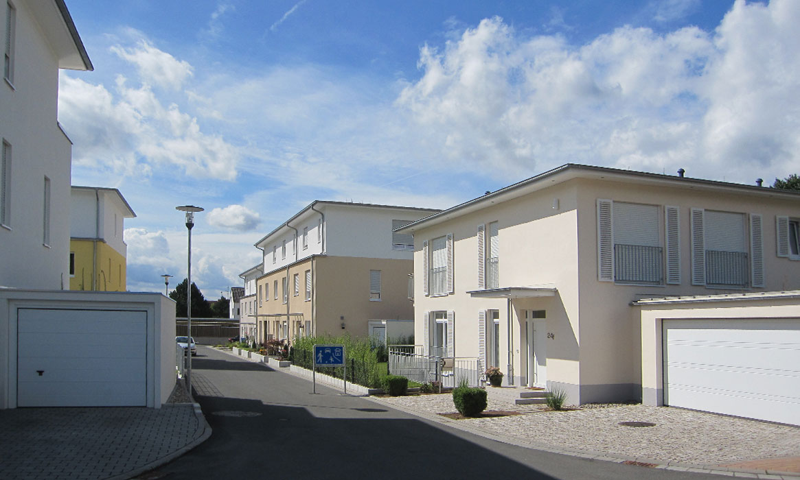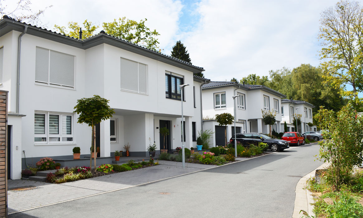 Die Projektgesellschaft Horn GmbH erstellte hier luxuriöse und großzügige Einfamilienhäuser mit Designer-Bädern und Wellness-Bereichen; kreative Architektur in Verbindung mit solider Bausubstanz.