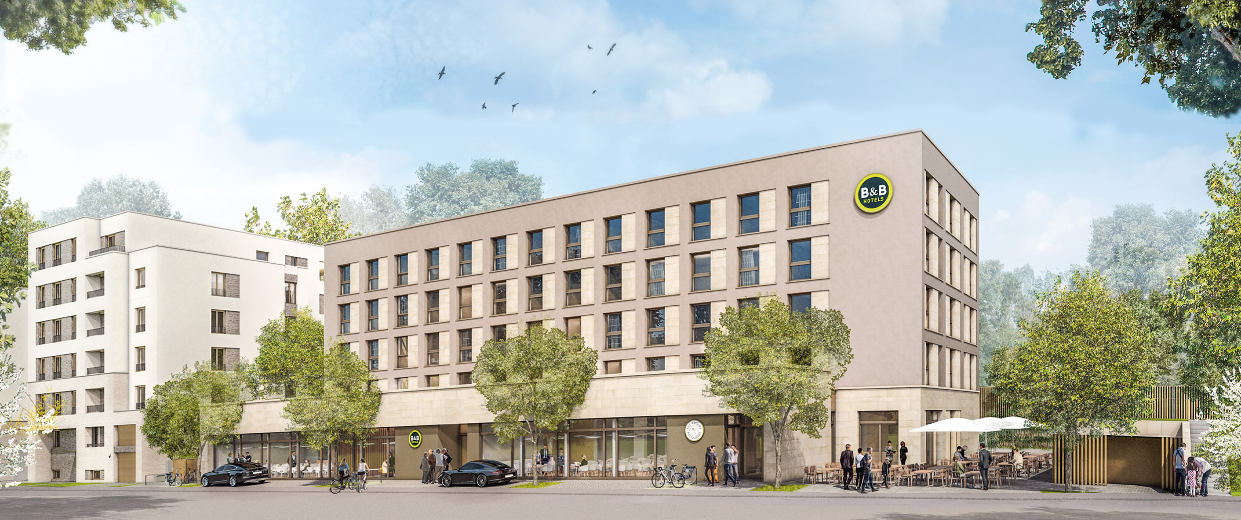 hin ausgerichtet. Die zeitgemäße, urbane Architektur wird weitläufig von Park-und Grünflächen