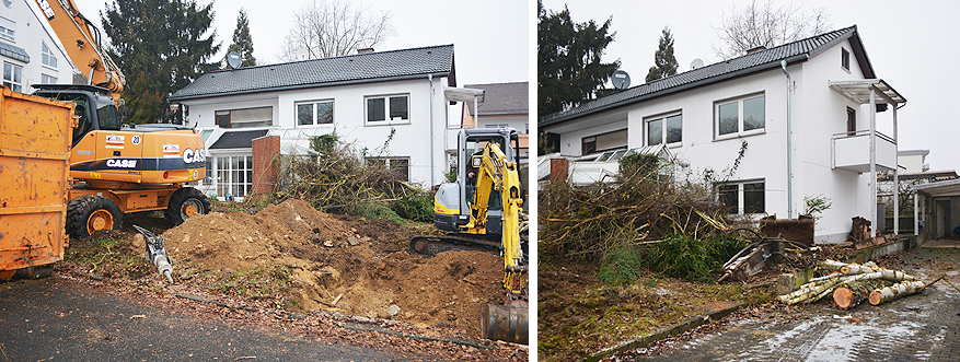 Am 09.01.2017 wurde mit den Abrissarbeiten des Bestandsgebäudes gestartet. Im Anschluss daran soll noch im Frühjahr mit der Errichtung eines kleinen, attraktiven Mehrfamilienhauses (5 Einheiten) und einer großen Tiefgarage begonnen werden. Das Haus liegt nur 5 Fußminuten von der Kelkheimer „Neuen Stadtmitte“ entfernt und trotzdem sehr ruhig in einer Seitenstraße.