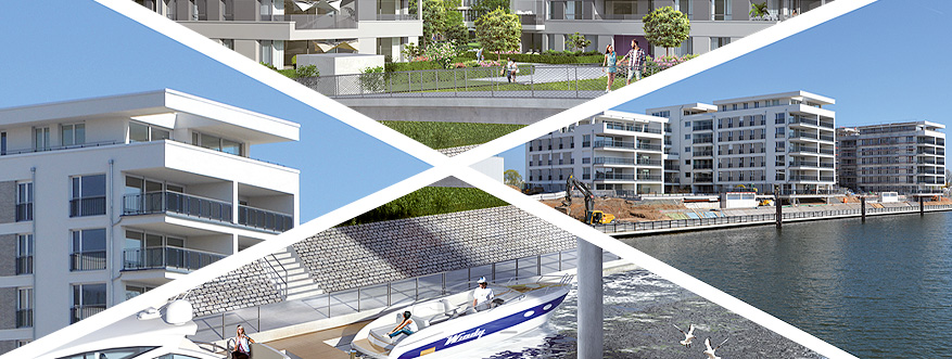 Die Rohbauarbeiten der letzten drei Wohnbauabschnitte auf der Hafeninsel in Offenbach am Main sind abgeschlossen. Aktuell schreiten die Innenausbauarbeiten der insgesamt entstehenden 132 hochwertigen Mietwohnungen zügig voran.