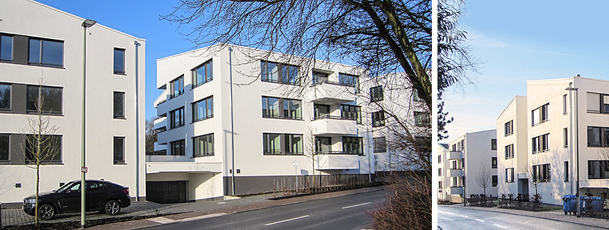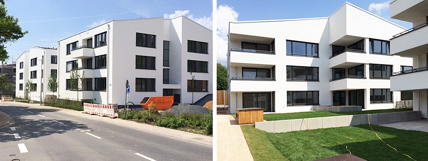 Der 1. Bauabschnitt mit insgesamt 18 Eigentumswohnungen wird im Juni fertiggestellt und an die neuen Eigentümer übergeben. Insgesamt stehen nur noch drei 4-Zimmer-Wohnungen zum Verkauf, die kurzfristig bezogen werden können. Die Fassadenarbeiten des 2. Bauabschnittes werden Ende Juni fertiggestellt, so dass die Außenanlagenarbeiten im 2. Abschnitt starten können.
