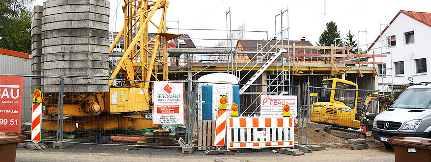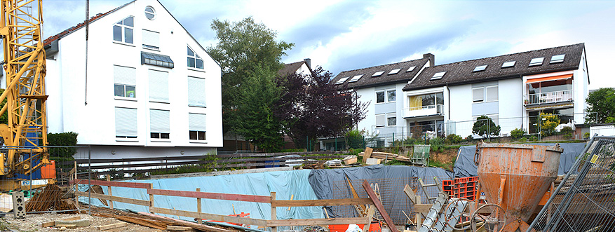 Am Bauvorhaben „Am Münsterer Wald“ in Kelkheim wurde die Decke über dem Erdgeschoss eingebracht. Die Rohbauarbeiten sollen noch im November diesen Jahres abgeschlossen sein. Auch ist geplant, den gesamten Vollwärmeschutz noch in diesem Jahr fertigzustellen.