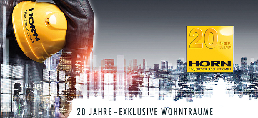 In diesen Tagen jährt sich die Geburtsstunde der Projektgesellschaft HORN GmbH zum zwanzigsten Mal. Mit Stolz und zahlreichen Erinnerungen blicken wir zurück auf das Erreichte. Das 20-jährige Jubiläum gibt uns aber nicht nur Anlass zur Rückschau, sondern auch den Blick nach vorne. Wir freuen uns schon jetzt auf das Kommende, die weiterhin gute Zusammenarbeit mit unseren vertrauten Partnern aus der Region und vielen weiteren exklusiven Wohnträumen.