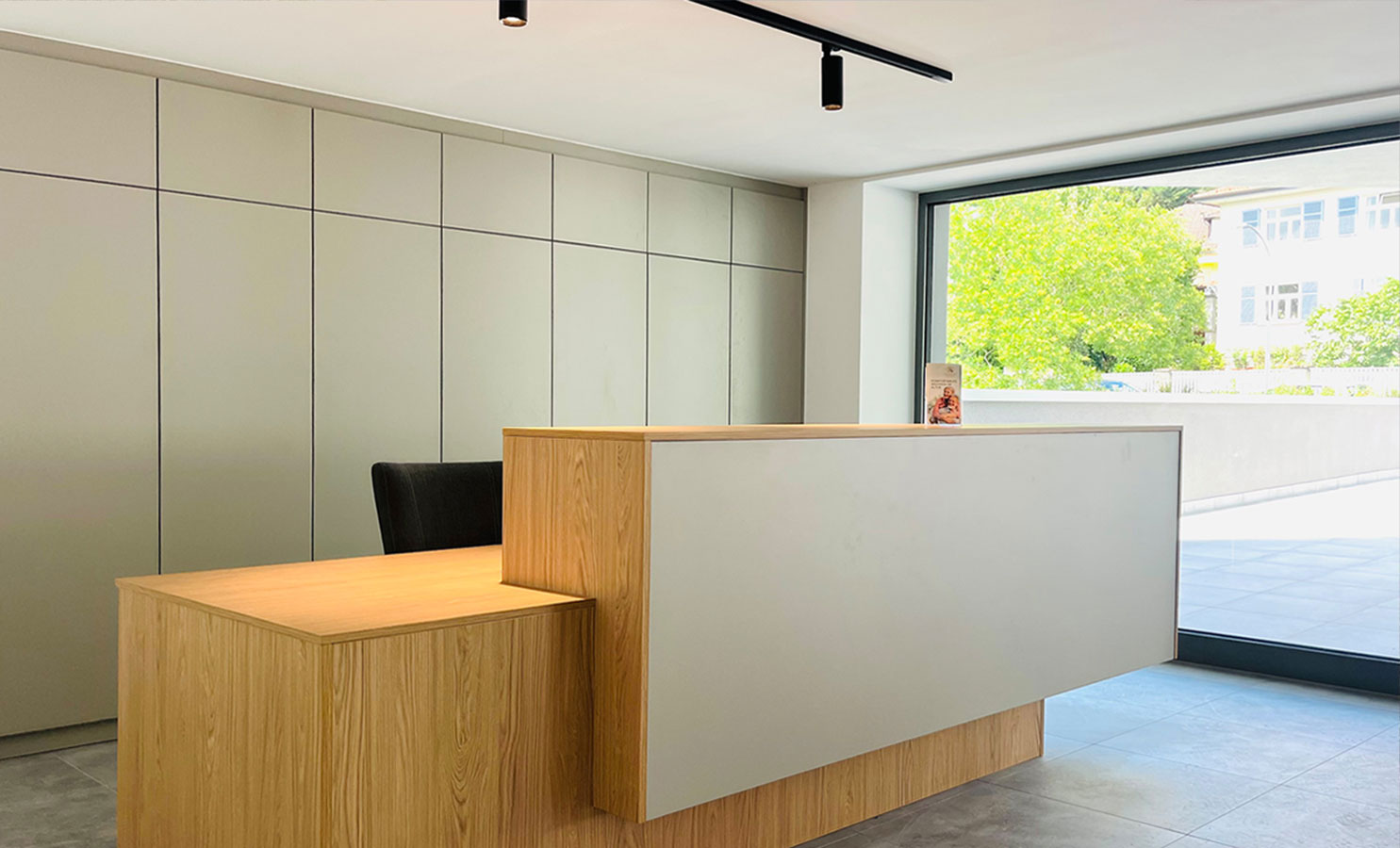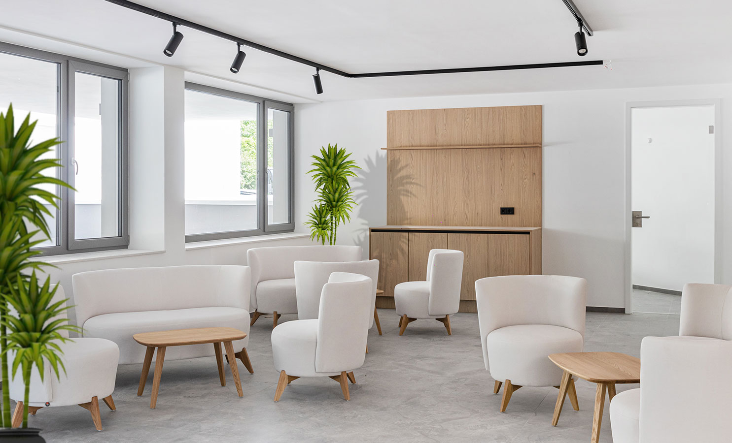 Der Empfang, strategisch im Frontbereich platziert, fungiert als erste Anlaufstelle für Besucher und sorgt mit seinem modernen Design für einen angenehmen ersten Eindruck. Hochwertige Materialien, harmonische Farben und eine durchdachte Beleuchtung schaffen eine Atmosphäre von Eleganz und Professionalität.